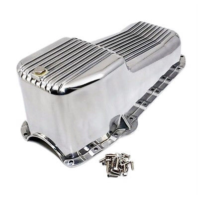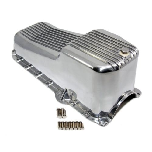 --Chevy small block polished aluminum stock capacity oil pan --Fits 1980-1985 Chevy 305-350 engines --4...