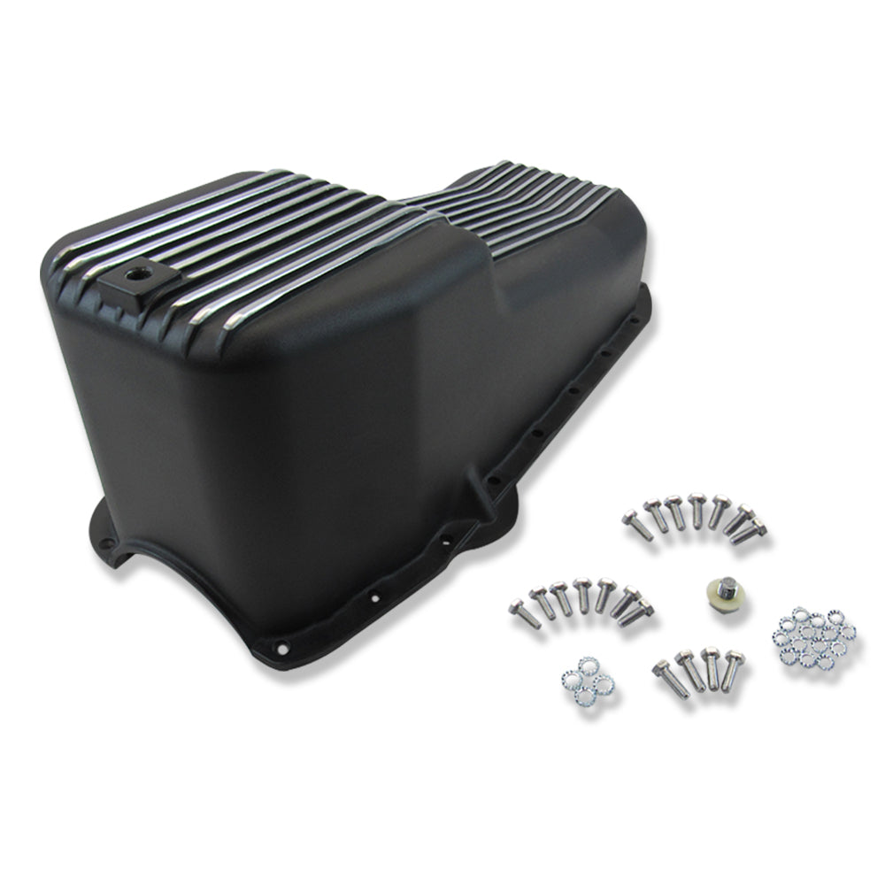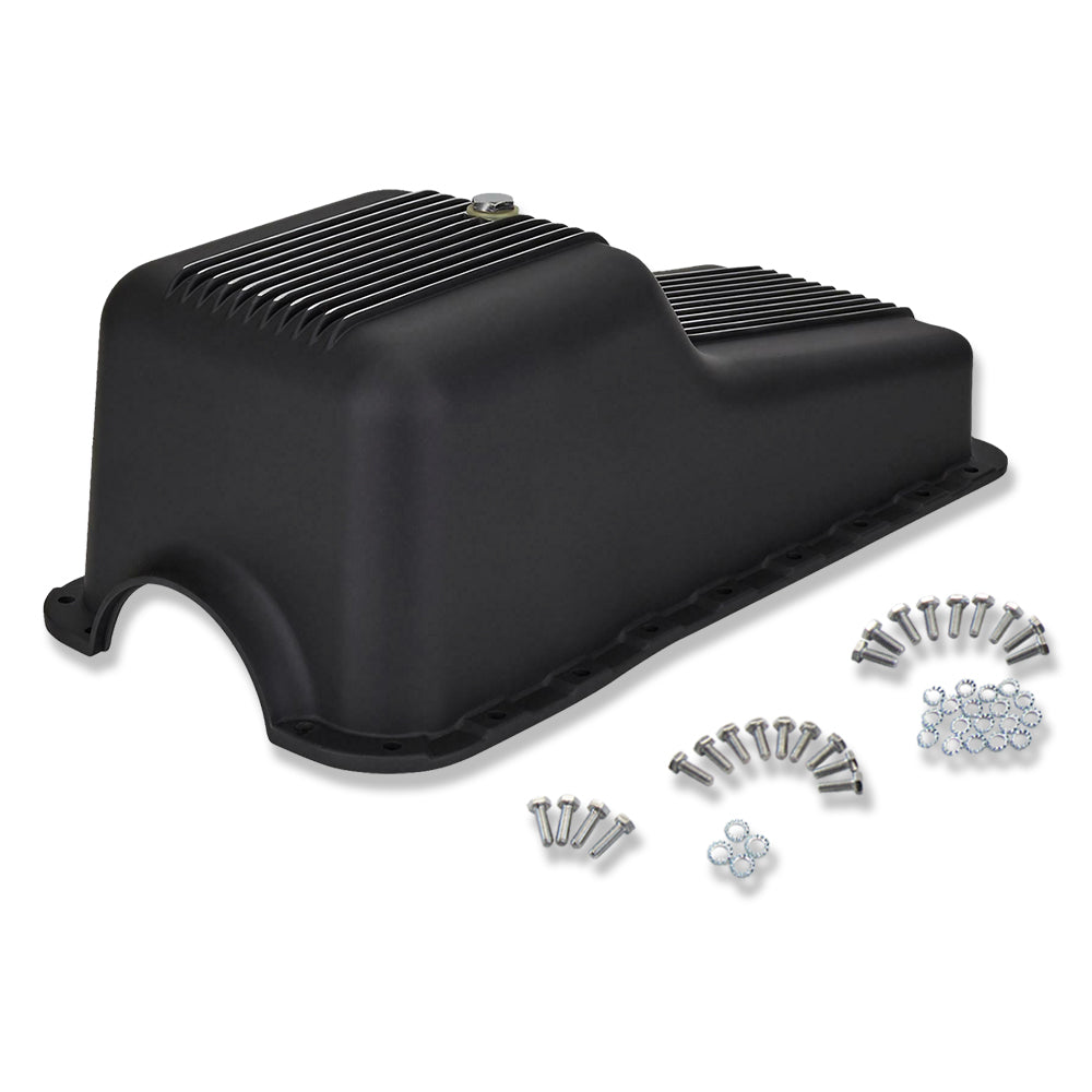 Finned Aluminum Stock Oil Pan Driver Side For 1955-1979 SBC Chevy 350-400 Black