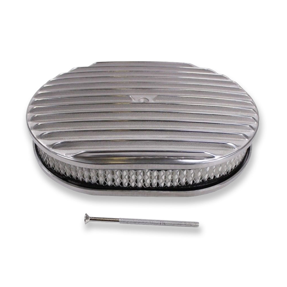 12" Oval Finned Polished Aluminum Air Cleaner Fits Chevy, Ford, & Mopar (Chryler, Dodge, Plymouth)...
