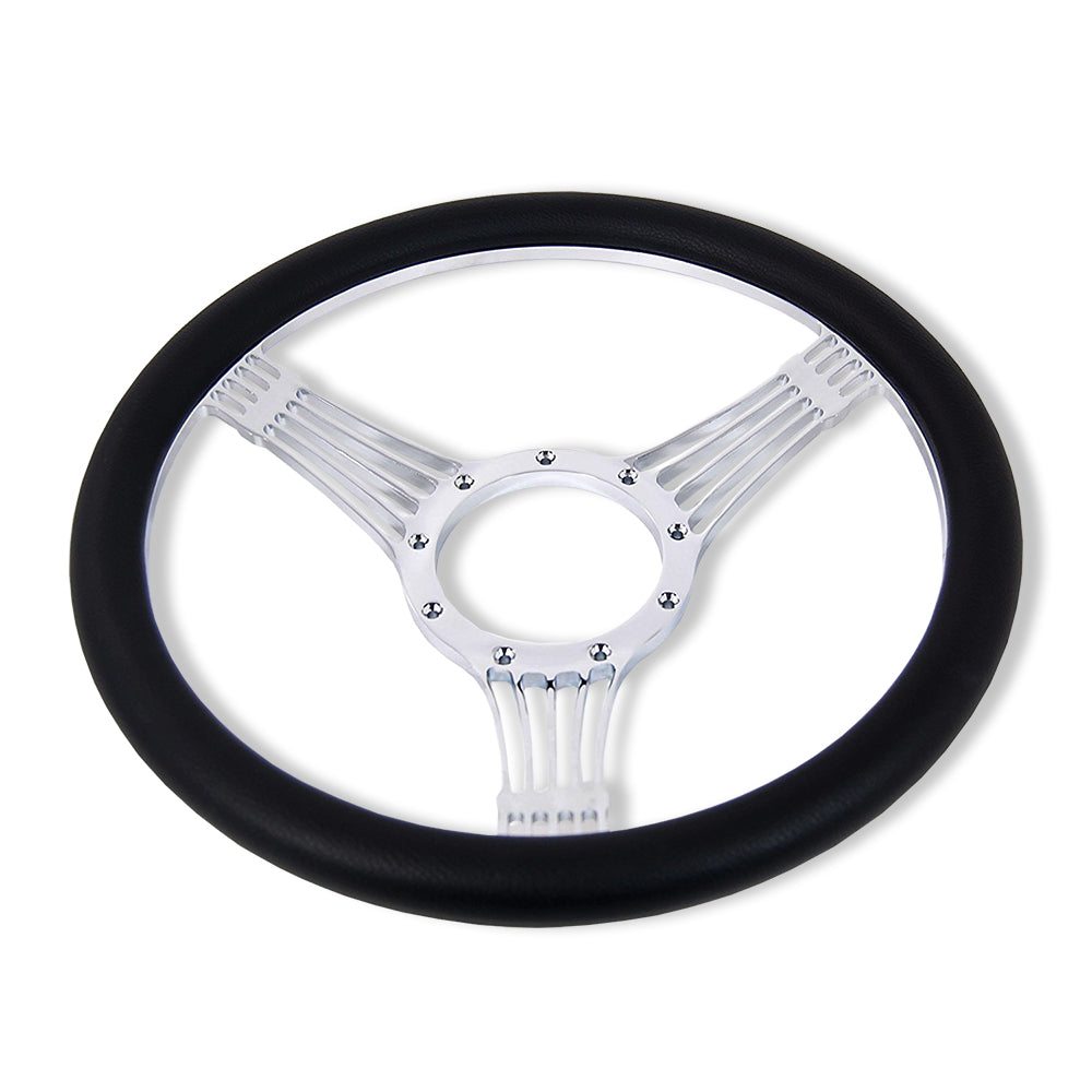 14" Chrome Spear Steering Wheel & Half Wrap Black Leather