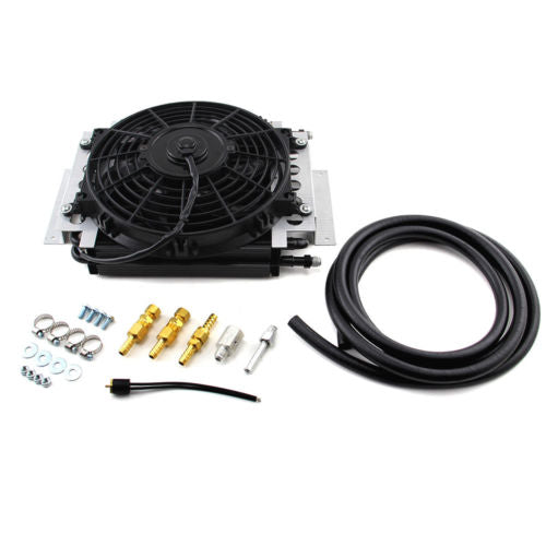 New Aluminum external transmission fluid oil cooler with 10" Electric fan towing