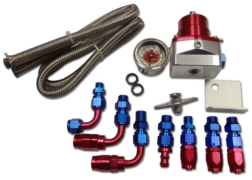 New Billet Fuel Pressure Regulator,Gauge,Oil Line,with Fittings,Red