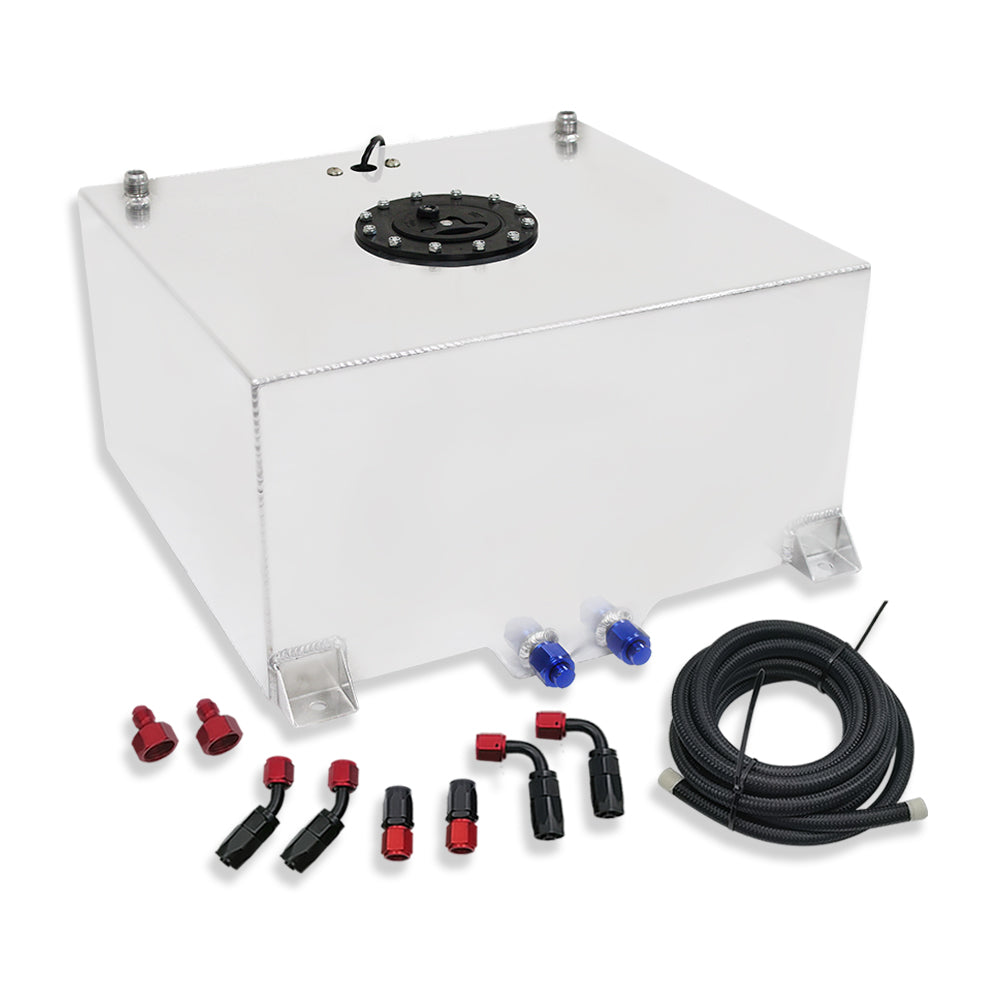 Polished Aluminum 20 Gallon Light Race Drift Fuel Tank & Level Sender+ Fuel Line Kit