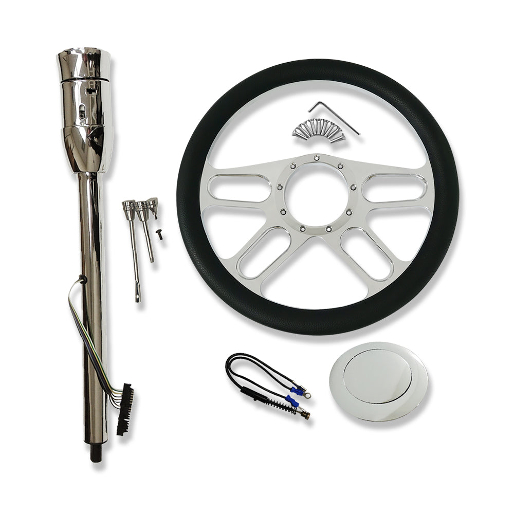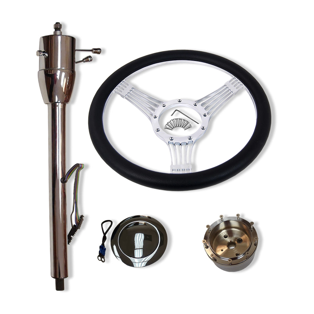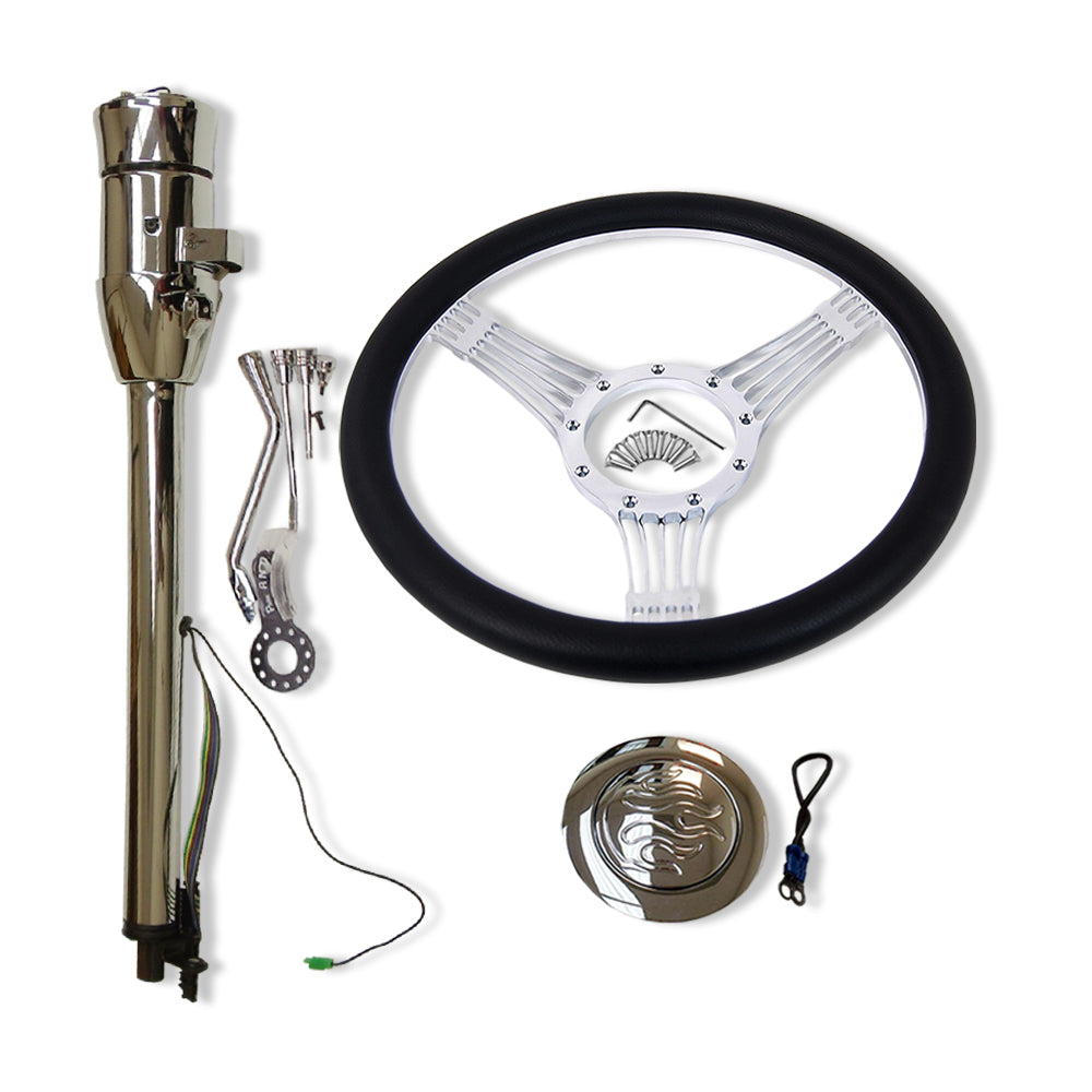 28" Tilt Automatic Steering Column with adapter & 14" Steering Wheel Horn Kit