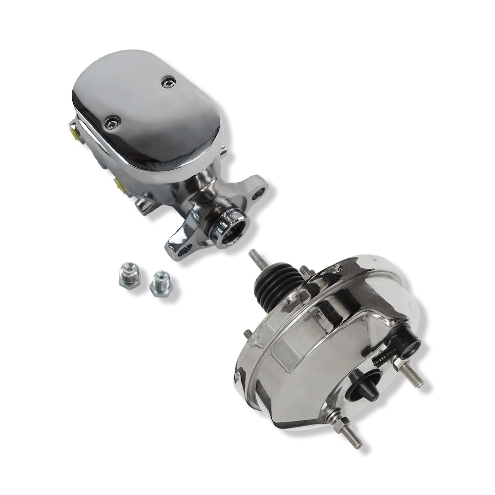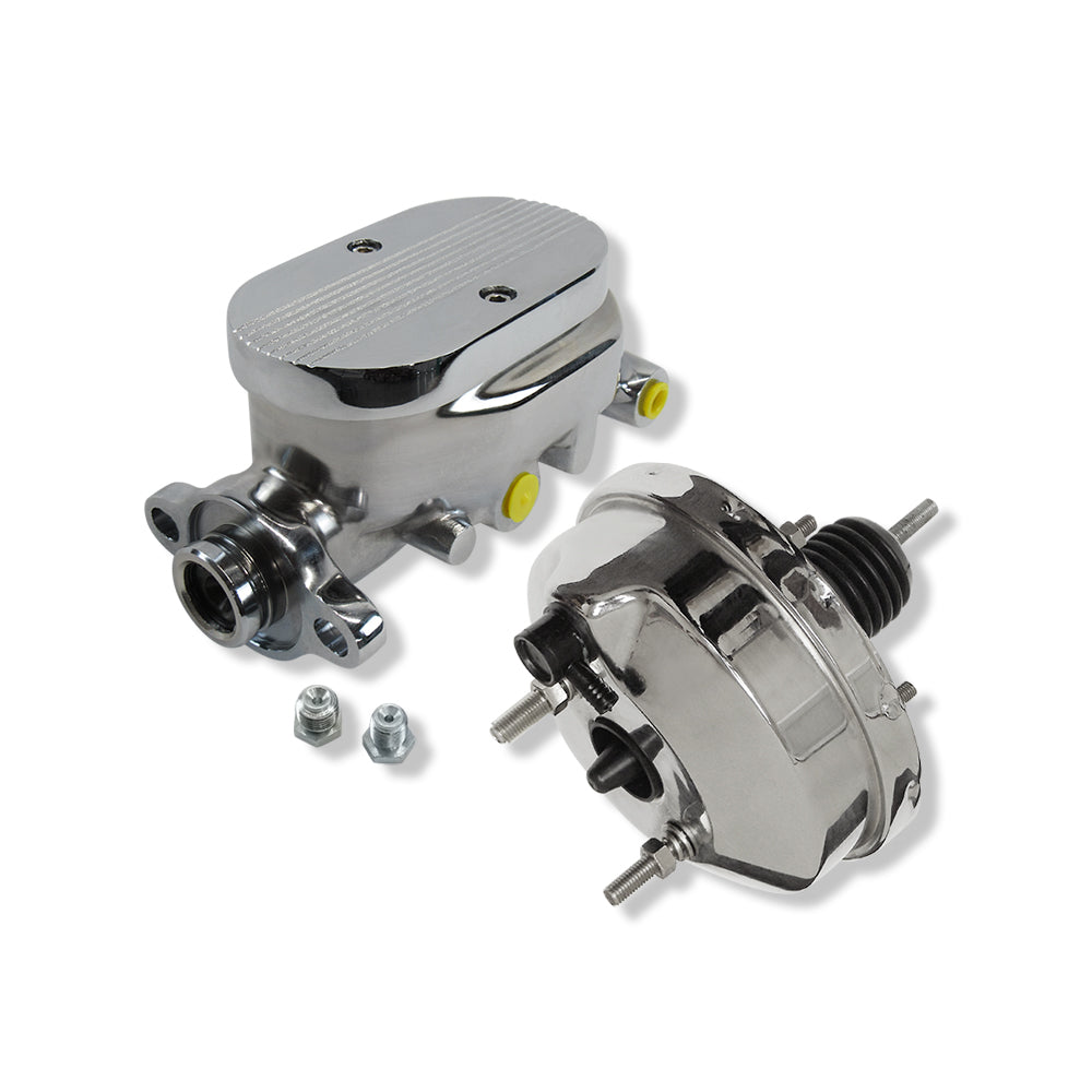 Chrome 8" Single Brake Booster & Finned Top Master Cylinder 1-1/8" Bore