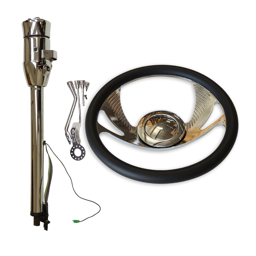 Chrome Auto Steering Column 30" No Key & 14" Steering Wheel & Horn Button