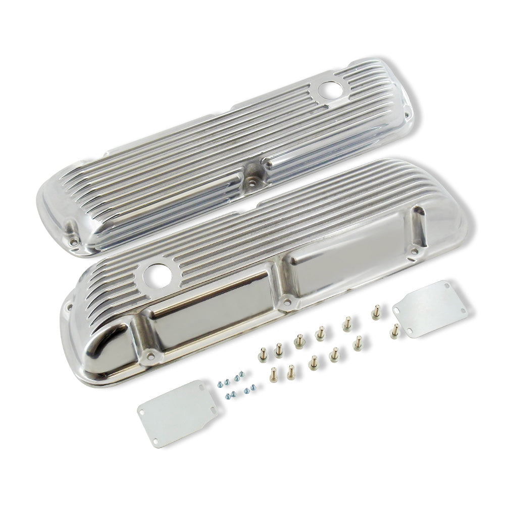 Small Block Ford SBF 289 302 351W Finned Polished Aluminum Short Valve Covers