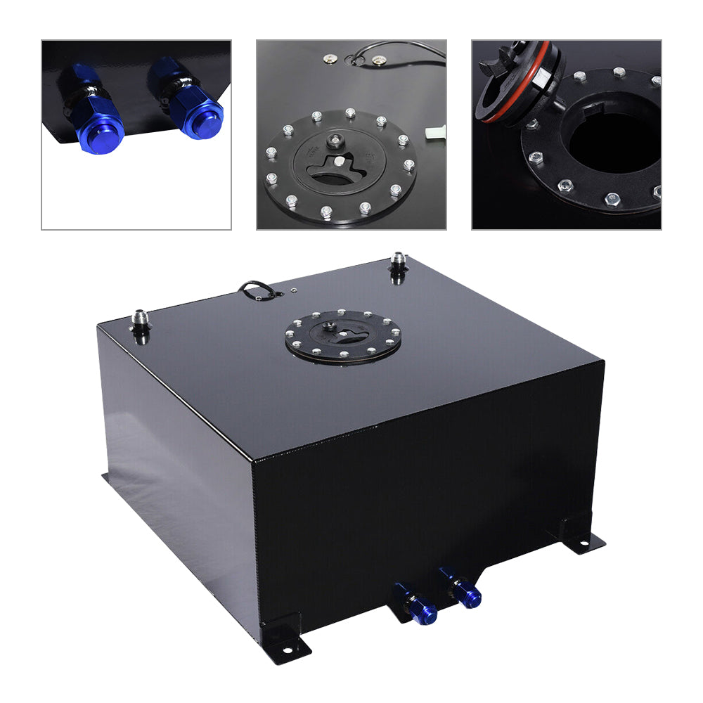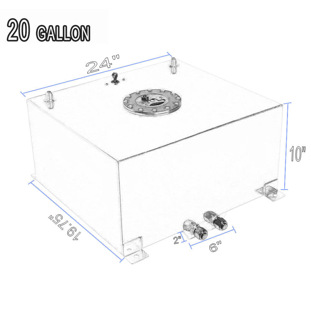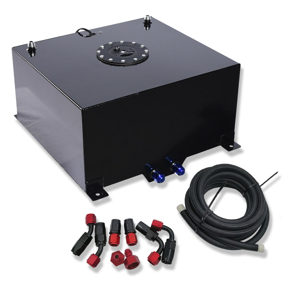 20 Gallon/80L Fuel Cell Gas Tank Black Aluminum+Level Sender & 12' Fuel Line Kit
