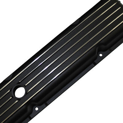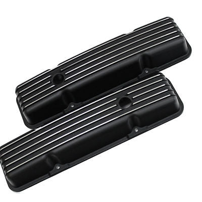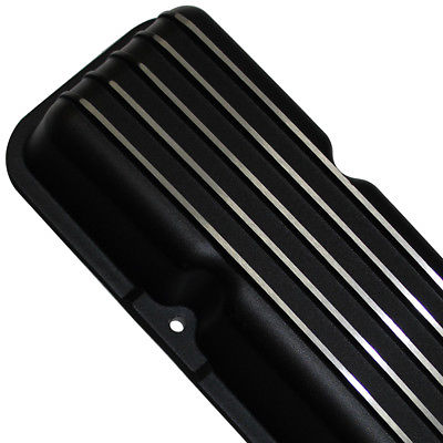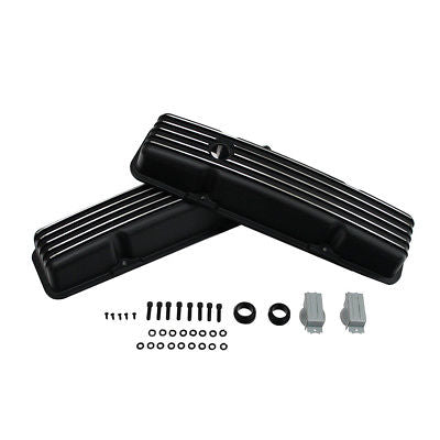 Black Coated Short Chevy Center Bolt Valve Covers SBC Small Block 305 350