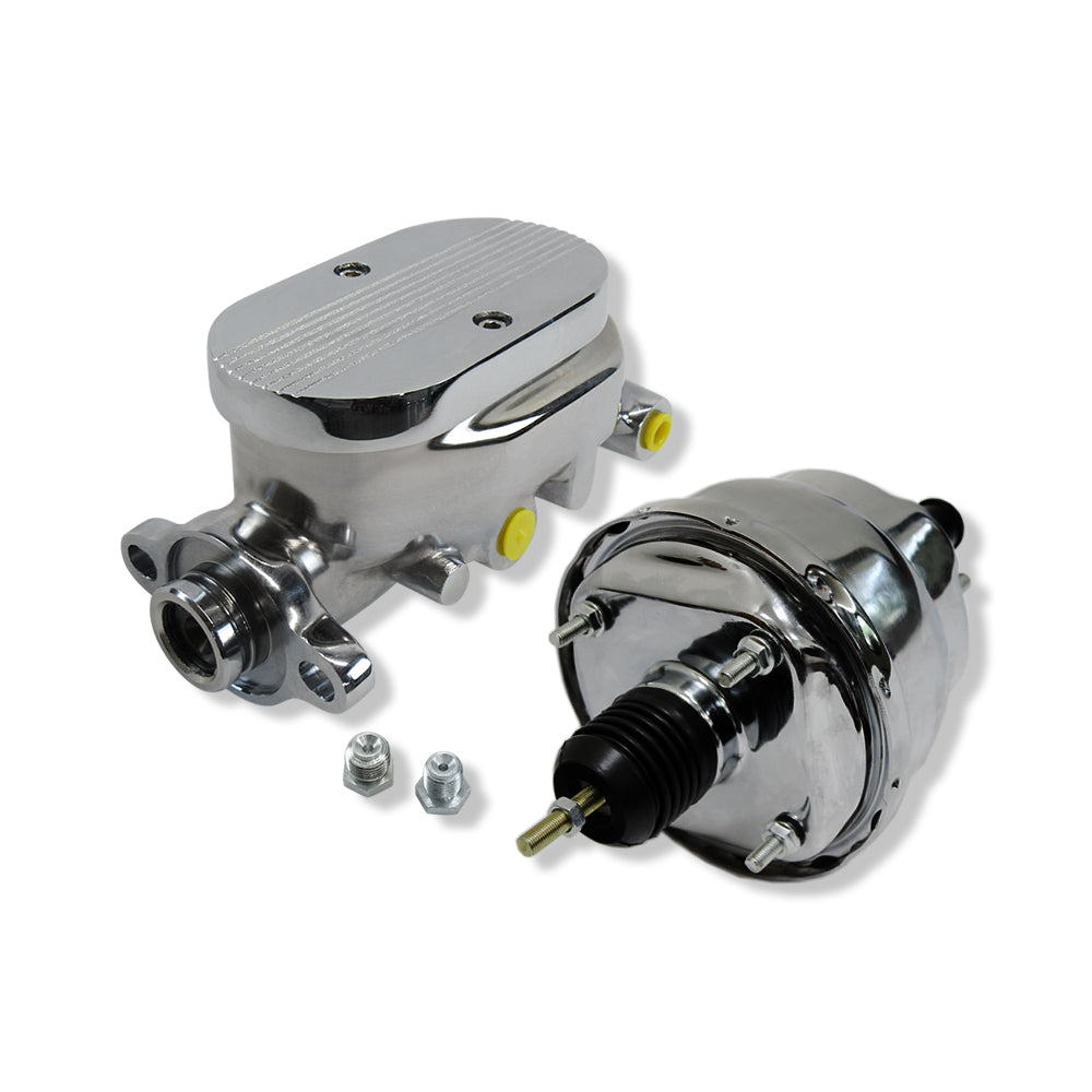 Chrome 7" Dual Diaphragm Brake Booster & Aluminum Master Cylinder 1" Bore 4 Port