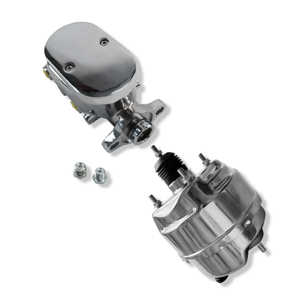 Chrome 8" Dual Diaphragm Brake Booster Bendix Style & Master Cylinder 1" Bore GM