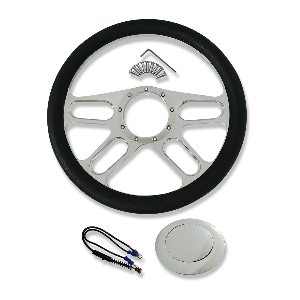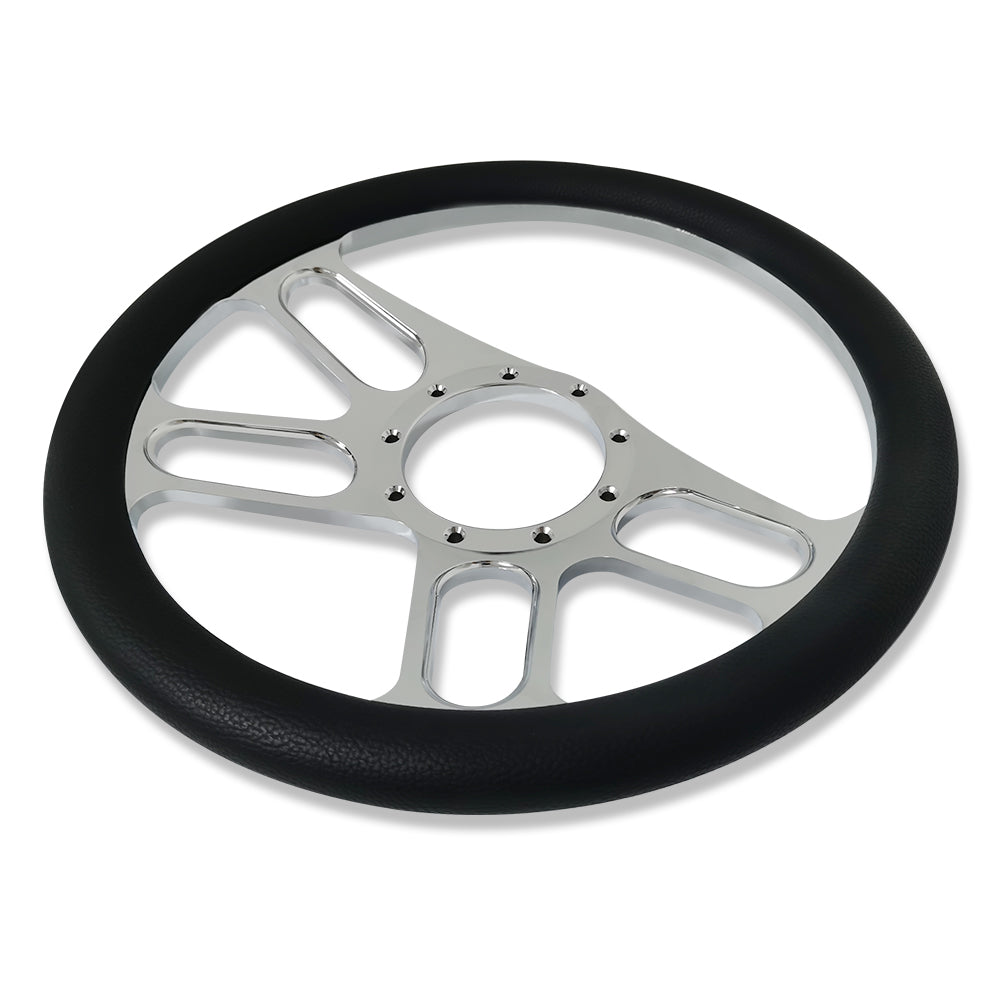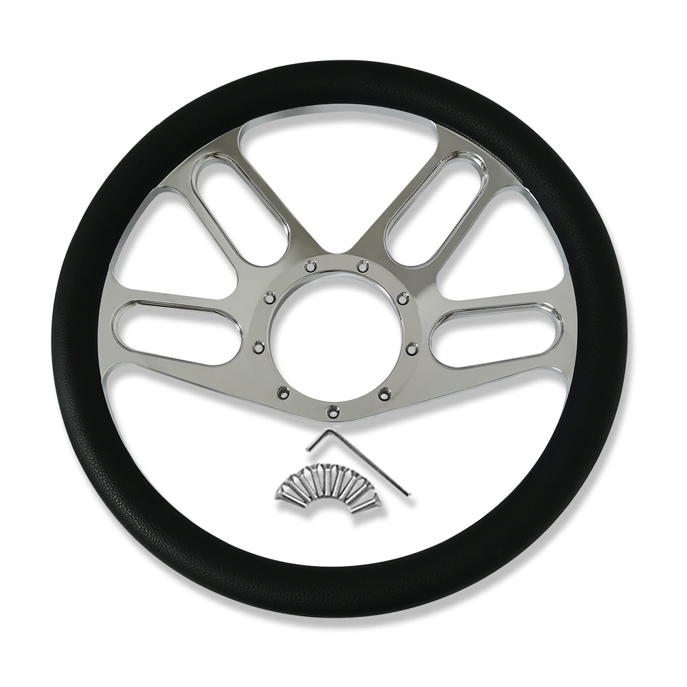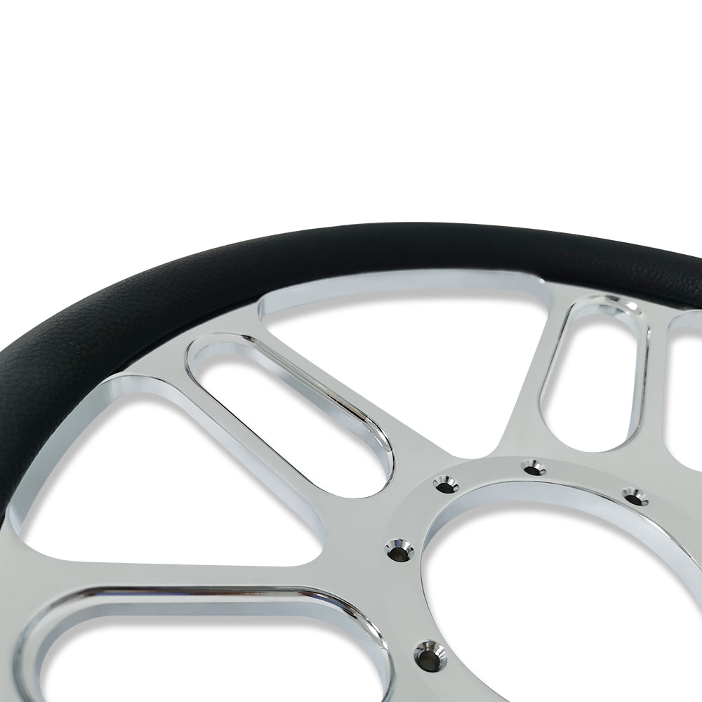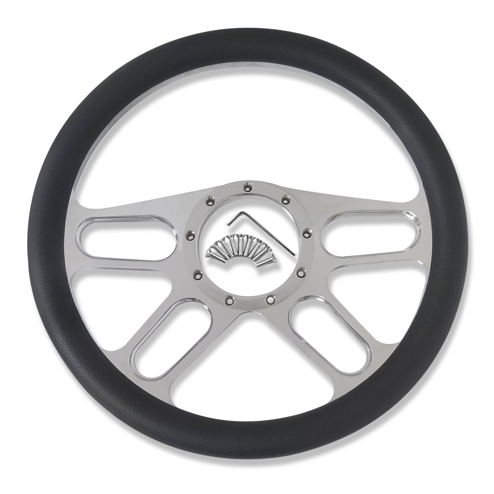 Brand New Chrome Aluminum 14” Billet New Age Half Wrap Steering Wheel