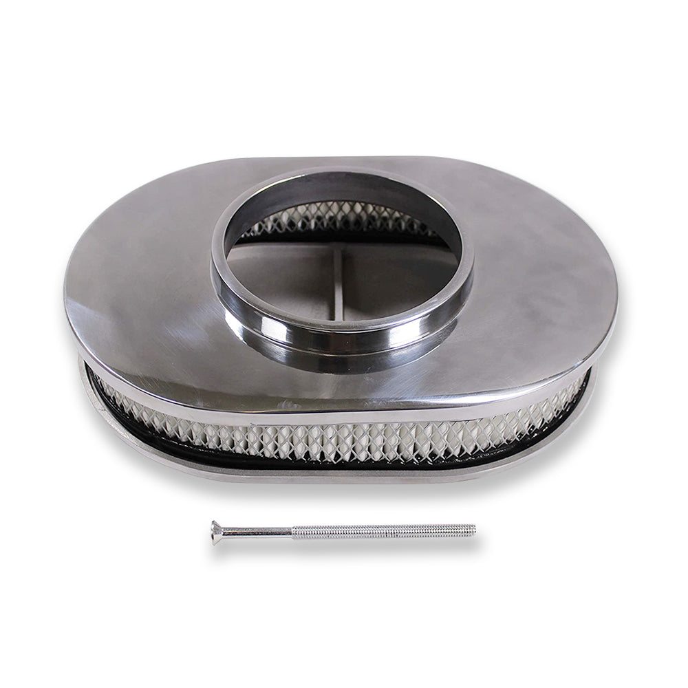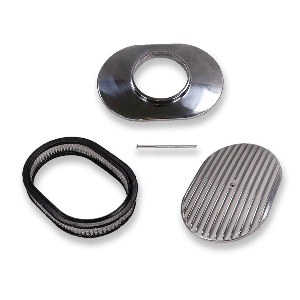 SBC BBC Chevy 12" x 2" Oval Full Finned Air Cleaner Assembly Polished Aluminum