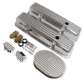 For 58-86 SBC Chevy Finned Tall Valve Covers & 12" Air Cleaner & Breather Kit