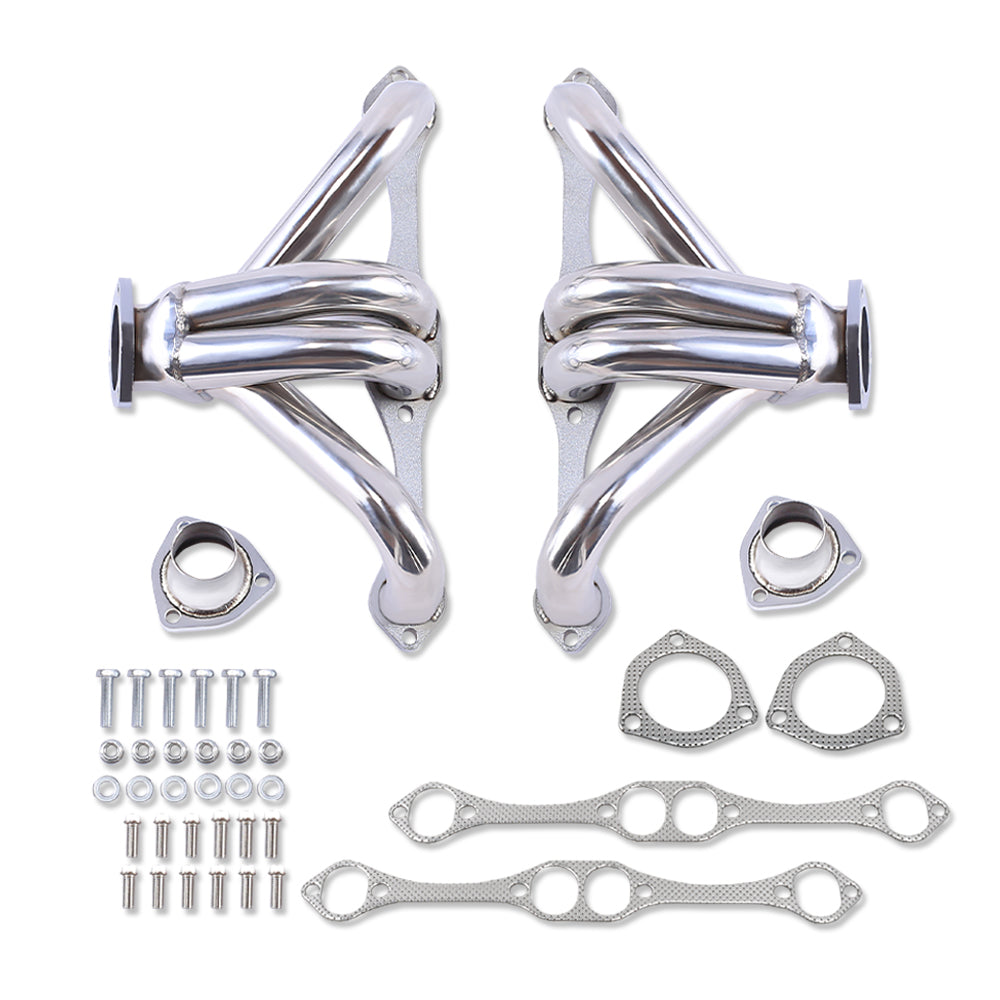 For Chevy SBC V8 265 283 305 327 350 400 55-up Shorty Hugger Headers Stainless