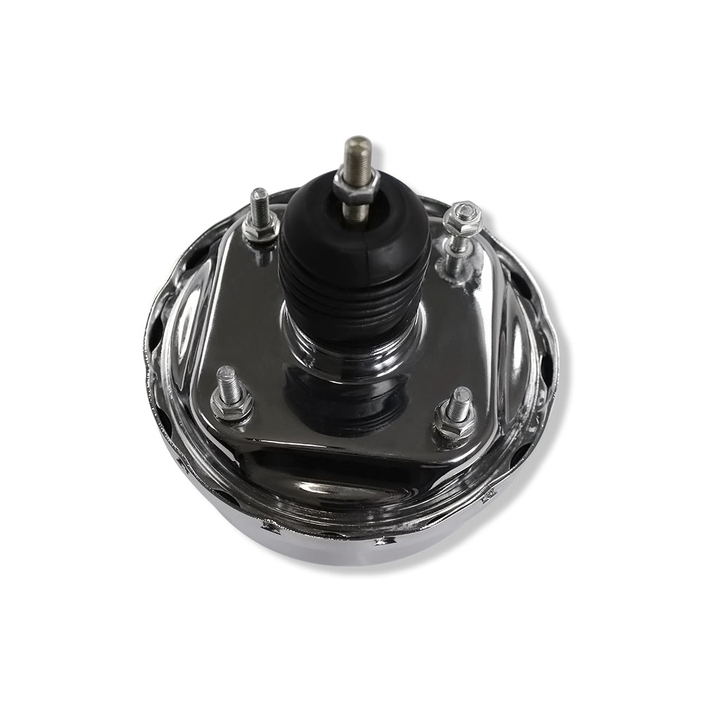 Description:--The booster will bolt up to most street rods, hot rods, and many other vehicles . --It also offers approximately 20% (some say up to 27%) more stopping power.--Standard 2 bolt brake master cylinder on top. --Has 4 bolts on bottom that mount to the firewall with 3 3/8" spacing.